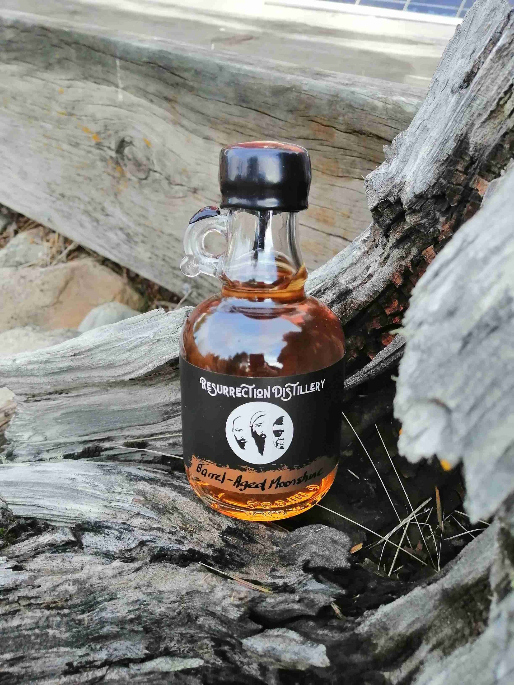 Introducing Barrel Aged Moonshine - our triple malt rebel of spirits that has been rapid aging like a pro in a mini oak barrel for 7 months. It's like time-traveling to the future, but without all the complicated math.