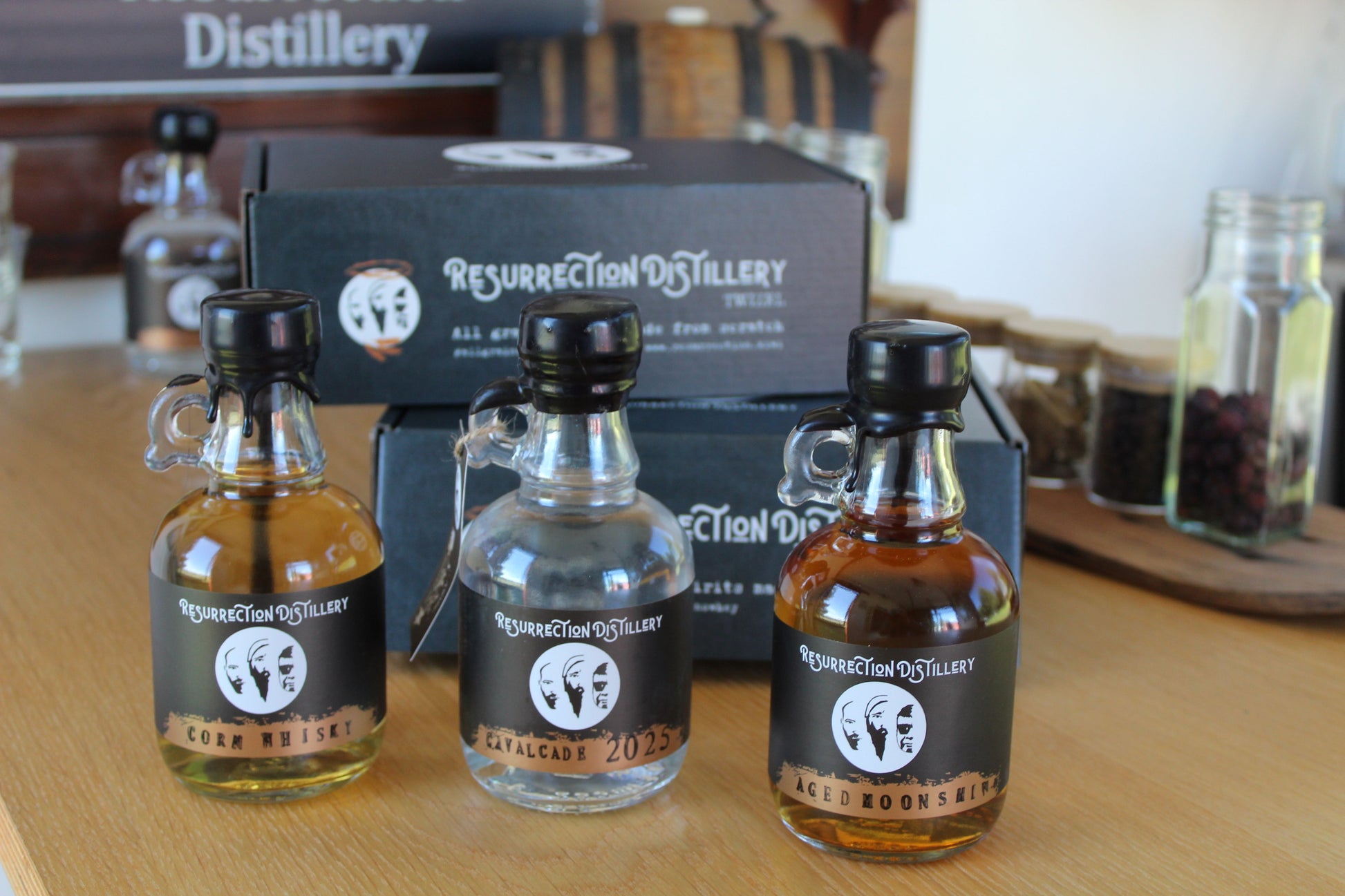 Here's a selection of 'shine that will kick your tastebuds into gear! We've got our "bourbon-like" barrel-aged moonshine, along with the smooth-but-flavourful corn liquor, and our newest shine on the block - barrel-aged corn liquor.